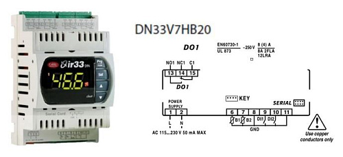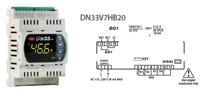 УНИВЕРСАЛЬНЫЙ КОНТРОЛЛЕР CAREL DN33, 2NTC/PTC/PT1000, 1 relay, BUZ, IR, 115 to 230 Vac, RTC