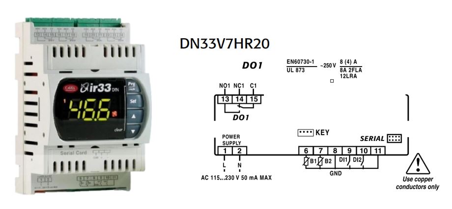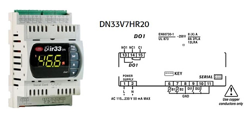 УНИВЕРСАЛЬНЫЙ КОНТРОЛЛЕР CAREL DN33, 2NTC/PTC/PT1000, 1 relay, BUZ, IR, 115 to 230 Vac