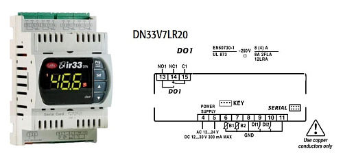 УНИВЕРСАЛЬНЫЙ КОНТРОЛЛЕР CAREL DN33, 2NTC/PTC/PT1000, 1 relay, BUZ, IR, 12 to 24 Vac / 12 to 30 Vdc