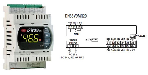 УНИВЕРСАЛЬНЫЙ КОНТРОЛЛЕР CAREL DN33, 2 Multi-inputs, 1 relay, BUZ, IR, 24 Vac/Vdc