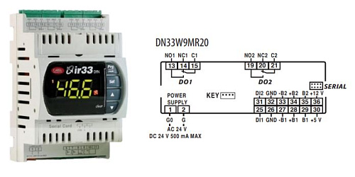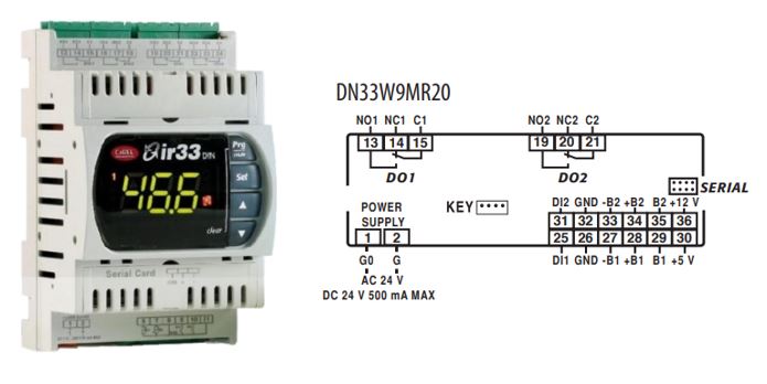 УНИВЕРСАЛЬНЫЙ КОНТРОЛЛЕР CAREL DN33, 2 Multi-inputs, 2 relays, BUZ, IR, 24 Vac/Vdc
