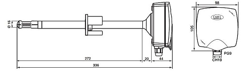 ДАТЧИК ТЕМПЕРАТУРЫ, КАНАЛЬНЫЙ, CAREL DUCT SENSOR -10T60 °C (OUT 0 TO 1 VDC - 4-20MA), DPDT010000