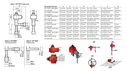 Корпус и присоединительная часть выполнены для монтажа под пайку на трубопровод с наружным диаметром 12 мм (ODF), при поставке вентиль комплектуется соответствующей катушкой; конструкция ориентирована на встроенную установку в линию всасывания перед испарителем и обеспечивает совместимость с типовыми креплениями и монтажными процедурами для пайки.