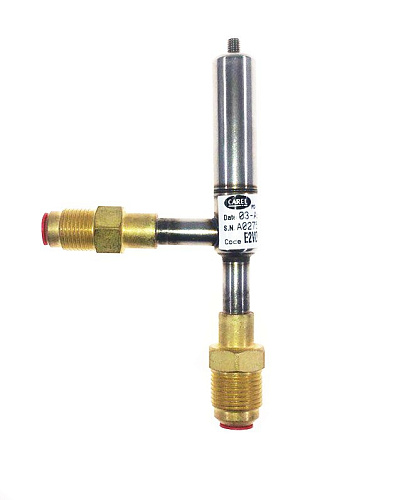 Электронный расширительный вентиль семейства E2V производства CAREL предназначен для дросселирования и точного регулирования подачи хладагента в испаритель в зависимости от тепловой нагрузки; типоразмер рабочей пары соответствует присоединениям 3/8"–1/2" по SAE, монтаж выполняется резьбой под гайку.