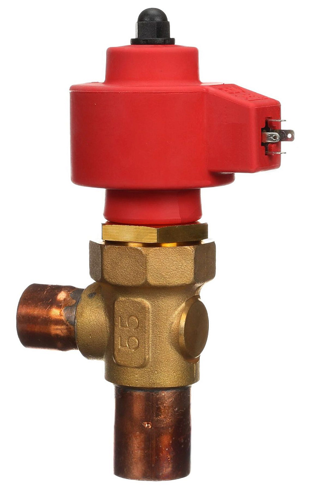 Клапан предназначен для интеграции в промышленные и коммерческие холодильные контуры (торговые холодильные шкафы, складские холодильные помещения, технологические испарители пищевой промышленности) и требует наличия внешнего контроллера, питающего электропривод и считывающего сигналы с датчиков давления и температуры; присоединение к системе выполняется пайкой к стандартным медным трубопроводам соответствующего типоразмера, при этом отсутствие смотрового стекла предполагает использование штатных точек измерения и сервисных портов для диагностики.