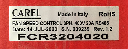 РЕГУЛЯТОР СКОРОСТИ ВРАЩЕНИЯ ВЕНТИЛЯТОРА CAREL FAN SPEED CONTROL, 400V, 20A, -20...50 C, IP55, FCR3204020