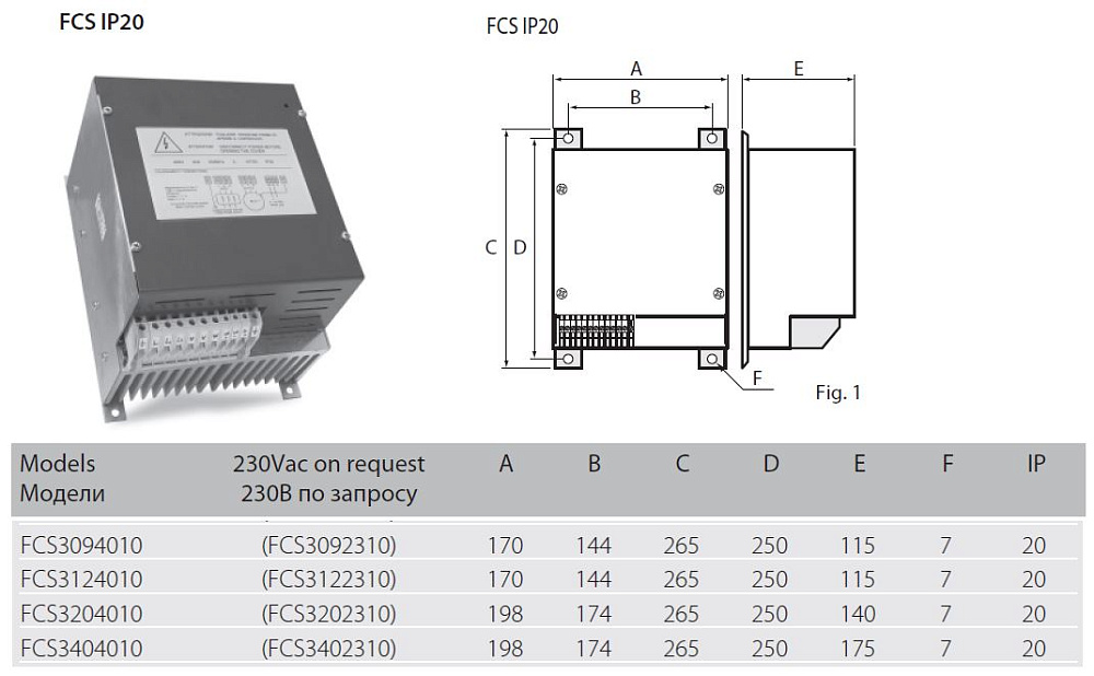 Корпус устройства имеет класс защиты IP20 и рассчитан на монтаж во внутренней части электрических шкафов или панелей управления; конструкция подразумевает размещение силовой части и управляющей электроники в едином модуле для интеграции в систему питания и управления двигателями.
