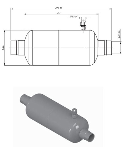 Фильтр-очиститель REFRIComP FEG 101-35 выполнен для установки в линию всасывания холодильных систем и рассчитан на работу в широком температурном диапазоне от минус 10 до плюс 120 градусов Цельсия; конструктивно рассчитан на эксплуатационные давления до 33 бар и предусматривает припойное (ODS) соединение с наружным диаметром примерно 35,1 мм для встраивания в медные трубопроводы системы.