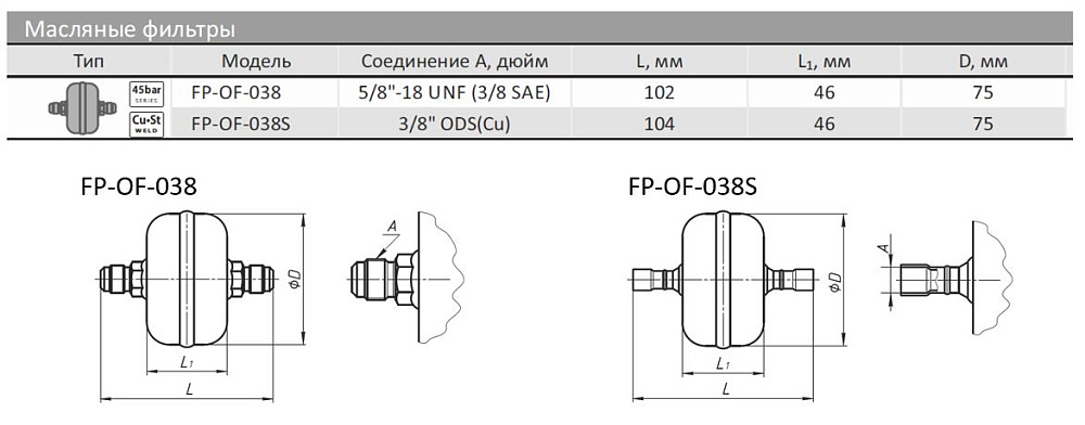 Фильтр-очиститель (масляный) FP-OF-038, 3/8" SAE (5/8"-18 UNF)