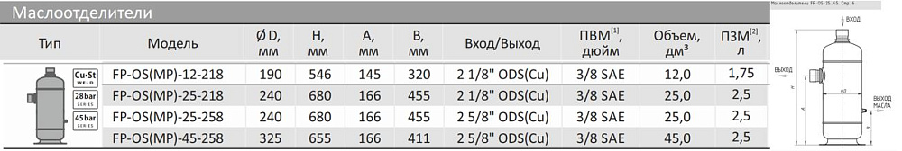 компрессора. Эффективность маслоотделителя FP более 90 %, что повышает производительность системы в