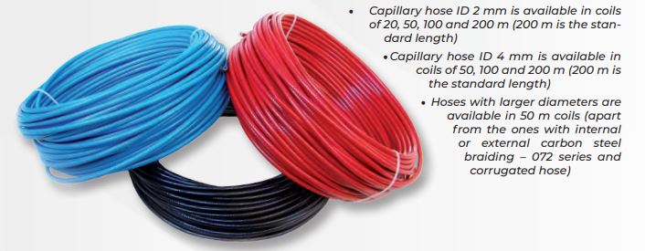 Трубка DN4 мм обладает рабочим давлением 45 бар, что делает ее подходящей для применения в системах с высокими требованиями к прочности. Внешний диаметр составляет 8,2 мм, а внутренний — 4 мм, что обеспечивает баланс между гибкостью и прочностью.