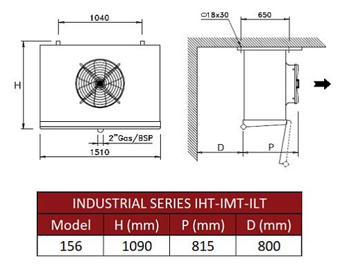 Воздухоохладитель Thermokey Industrial 22,5 кВт, R404a, SC2 (-8/∆8), 1х560мм, IHT 156.410