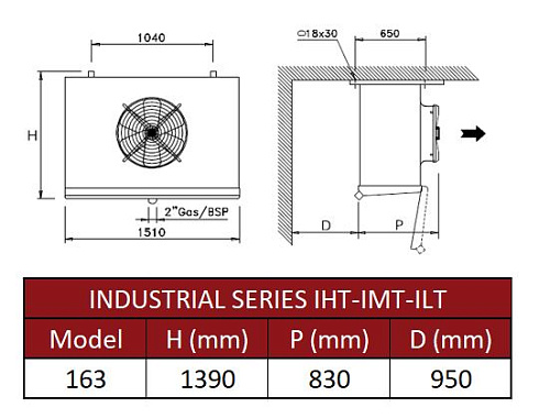 Воздухоохладитель Thermokey Industrial 32,2 кВт, R404a, SC2 (-8/∆8), 1х630мм, IHT 163.410 E