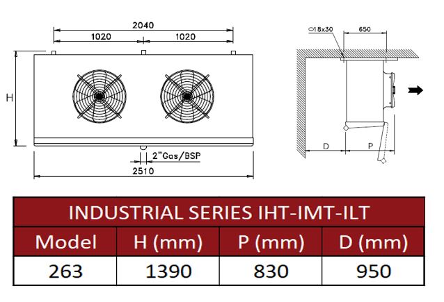 Воздухоохладитель Thermokey Industrial 23,6 кВт, R404a, SC3 (-25/∆7), 2х630мм, ILT 263.116