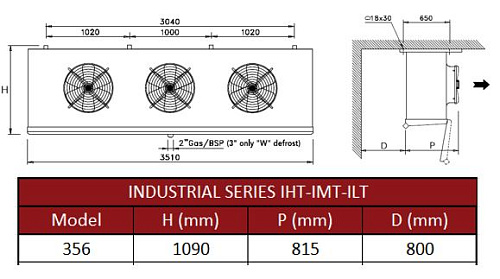 Воздухоохладитель Thermokey Industrial 34,3 кВт, R404a, SC3 (-25/∆7), 3х560мм, ILT 356.119
