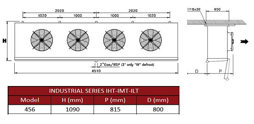 Воздухоохладитель Thermokey Industrial 33,2 кВт, R404a, SC3 (-25/∆7), 4х560мм, ILT 456.116 E