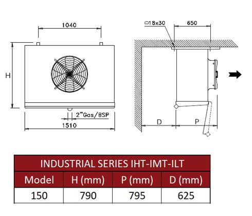 Воздухоохладитель Thermokey Industrial 9,4 кВт, R404a, SC2 (-8/∆8), 1х500мм, IMT 150.76