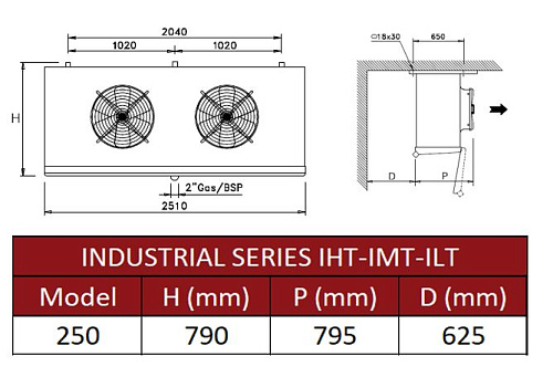 Воздухоохладитель Thermokey Industrial 24 кВт, R404a, SC2 (-8/∆8), 2х500мм, IMT 250.78 E