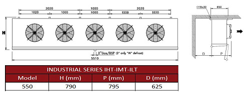 Воздухоохладитель Thermokey Industrial 47 кВт, R404a, SC2 (-8/∆8), 5х500мм, IMT 550.76