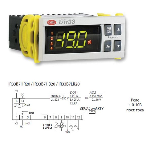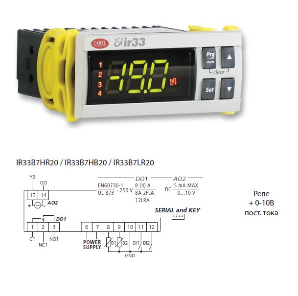 КОНТРОЛЛЕР УНИВЕРСАЛЬНЫЙ CAREL IR33 UNIV. 2 NTC/PTC/PT1000, 1 D.O.+ 1A.O., BUZ, IR, RTC,115 TO 230