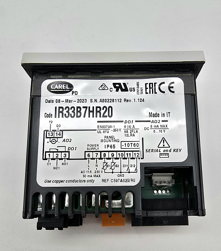 КОНТРОЛЛЕР УНИВЕРСАЛЬНЫЙ CAREL IR33 UNIV. 2 NTC/PTC/PT1000, 1 D.O.+ 1A.O., BUZ, IR, 115 TO 230 VAC