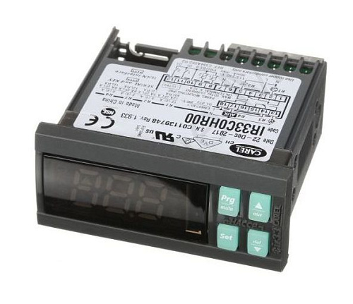 Контроллер семейства IR33 производства CAREL представляет собой панельный прибор с питанием в диапазоне 115–230 В переменного тока и встроенными электромеханическими выходами: один исполнительный контакт с номиналом 16 А и три контакта с номиналом 8 А, что обеспечивает возможность прямого управления типовыми нагрузками холодильных и климатических схем.
