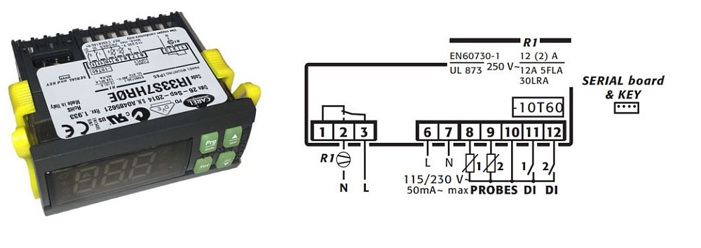КОНТРОЛЛЕР CAREL IR33 SMART 16A 115/230VAC 2NTC/PTC 2DI IR MORS.VITE INGLESE