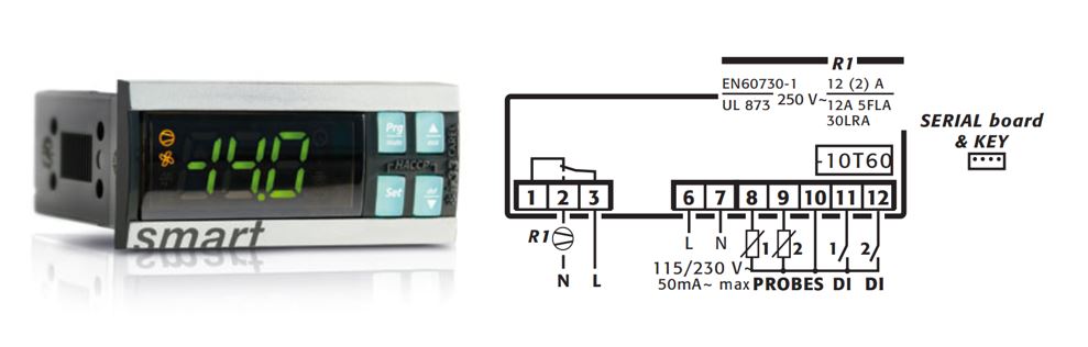 Контроллер IR33 Smart, изготовленный компанией CAREL, предназначен для управления температурными режимами в холодильных и климатических системах; питание осуществляется в диапазоне 115–230 В переменного тока, а встроенное электромеханическое реле обеспечивает коммутацию нагрузок с номиналом до 16 А.