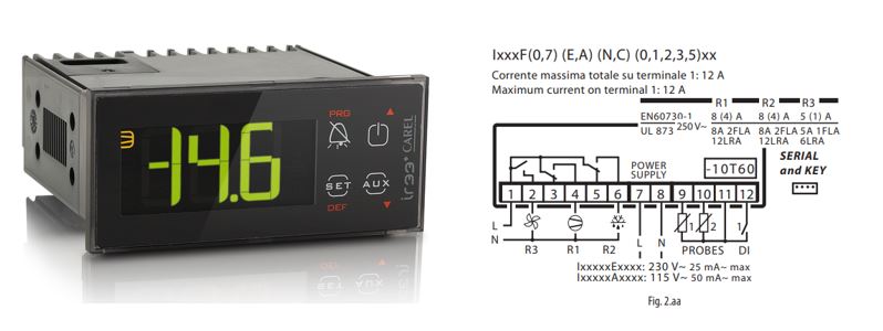 КОНТРОЛЛЕР CAREL IR33+ 8A 8A 5A 230 VAC BUZ 2NTC/PTC 1D.I. SCREW TERM.