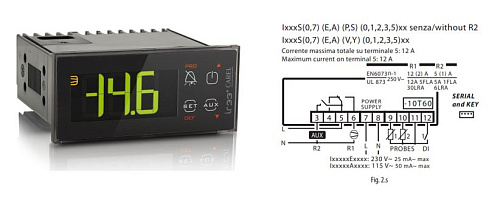 Применение характерно для систем торгового и складского холодильного оборудования, морозильных камер и климатических установок, где требуется панельный контроллер с поддержкой двух термодатчиков и одним цифровым входом; совместимость с сетевым питанием 230 V и возможность вывода коэффициента управления на внешние индикаторы обеспечивают гибкость интеграции в существующие технологические схемы.