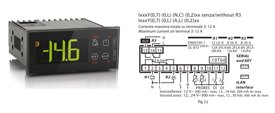 КОНТРОЛЛЕР CAREL IR33+ 16A 8A 12 TO 24 VAC BUZ 2NTC 2D.I. SCREW TERM.