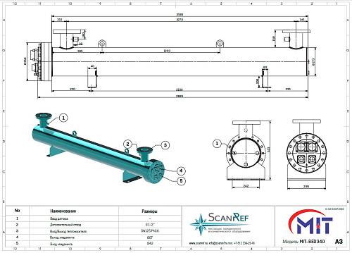 Испаритель кожухотрубный двухконтурный MIT-BED 340