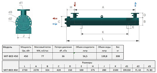 Испаритель кожухотрубный двухконтурный MIT-BED 450