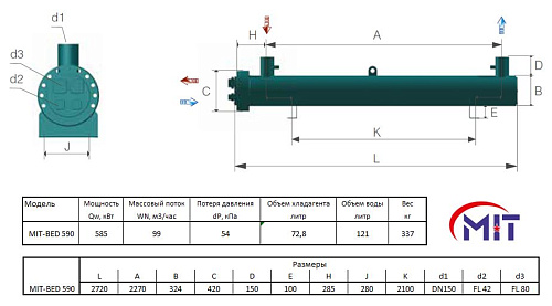 Испаритель кожухотрубный двухконтурный MIT-BED 590