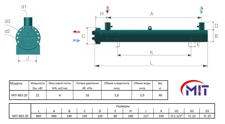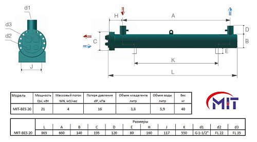 Испаритель кожухотрубный одноконтурный MIT-BES 20