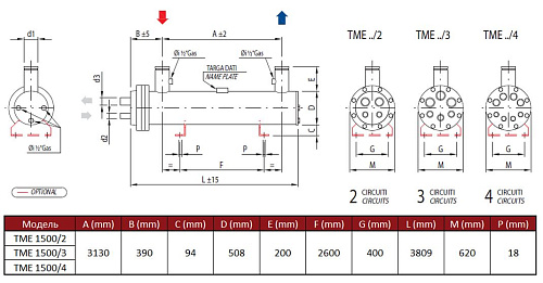Испаритель кожухотрубный Thermokey серии «TME» 1500 кВт, R407C, T0=+2 , Tw +12 / +7, ТМE 1500/3
