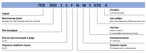 Воздухоохладитель Thermofin серии TEB, 050-11-F-N-W5-070-E, 7 мм, 1*500мм, 18,9 кВт/ 15,1 кВт (SC2 / SC3)