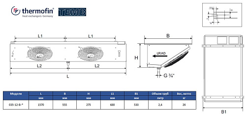 Воздухоохладитель Thermofin серии TEMB.1, 035-12-B-N-W5-035, 3,5 мм, 2*350мм, 10,9 кВт/ - кВт (SC2 / SC3)