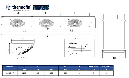 Воздухоохладитель Thermofin серии TEMB.1, 035-13-C-N-W5-035, 3,5 мм, 3*350мм, 20,3 кВт/ - кВт (SC2 / SC3)