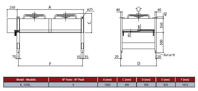 Конденсатор Thermokey серии «L» 32.2 кВт, R404a, ∆T=15 K, EN 327 2х500 мм, KL 1250.AD V