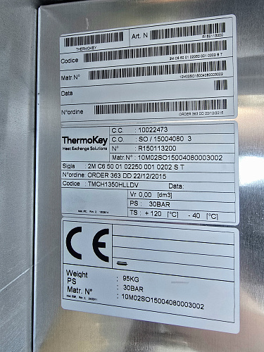 Конденсатор ThermoKey (Италия) 68 кВт, 3х500 мм, R404a, ∆T=15 K, EN 327, БЕЗ ВЕНТИЛЯТОРОВ, TMCH1350HLLDV