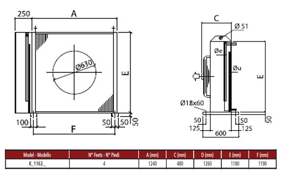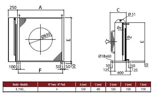 Конденсатор Thermokey серии «L» 46.7 кВт, R404a, ∆T=15 K, EN 327 1х630 мм, KL 1163.CD Н