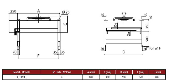 Агрегат выполнен в конструкции с вертикальным направлением потока воздуха: воздух проходит через оребрённый теплообменник в направлении, перпендикулярном расположению входных патрубков, а однофантажная схема упрощает компоновку и обслуживание. Расположение вентиляторного узла и теплообменной секции рассчитано на наружную установку в составе выносных конденсаторов и обеспечивает монтаж в стандартных сервисных зонах.