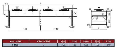Конденсатор Thermokey серии «Q» 233.3 кВт, R404a, ∆T=15 K, EN 327 4х800 мм, KQ 1480.BD V