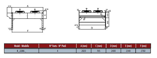 Конденсатор Thermokey серии «Q» 219.2 кВт, R404a, ∆T=15 K, EN 327 4х800 мм, KQ 2280.BD V