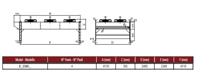 Конденсатор Thermokey серии «Q» 263.5 кВт, R404a, ∆T=15 K, EN 327 6х800 мм, KQ 2380.AD V