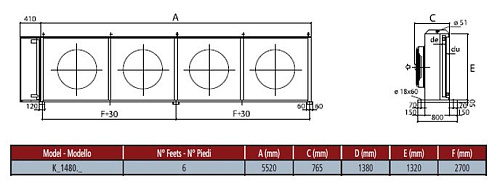 Конденсатор Thermokey серии «R» 147.3 кВт, R404a, ∆T=15 K, EN 327 4х800мм, KR 1480.AD H