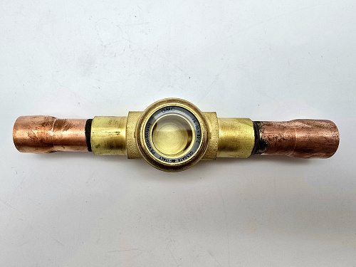 Смотровые стекла необходимы для визуального просмотра состояния хладагента в холодильной системе. Индикатор влажности поможет определить наличие влаги в системе и необходимость замены фильтра-сушителя. Смотровые стёкла с индикатором влажности устанавливаются на жидкостной линии. Без индикатора — на линии возврата масла из маслоотделителя.