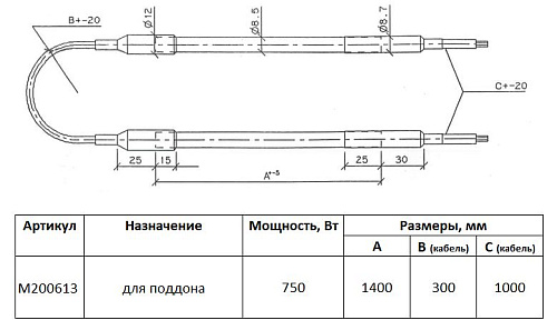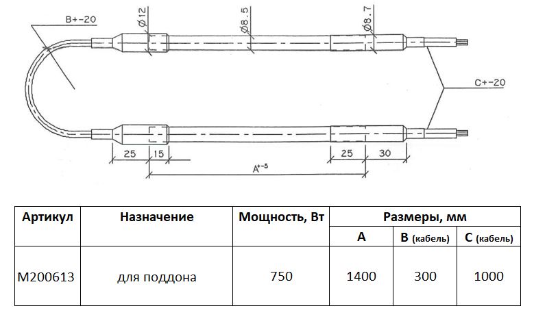 ТЭН поддона воздухоохладителя ThermoKey M200613 (0,75 кВт, 1400 мм, 8,5 мм)