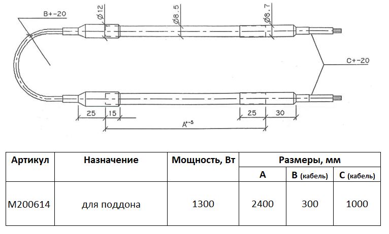 ТЭН поддона воздухоохладителя ThermoKey M200614 (1,3 кВт; 2400 мм, 8,5 мм)